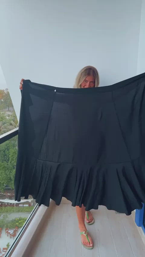 Saia longa transpassada confeccionada em tecido viscose de toque sedoso.